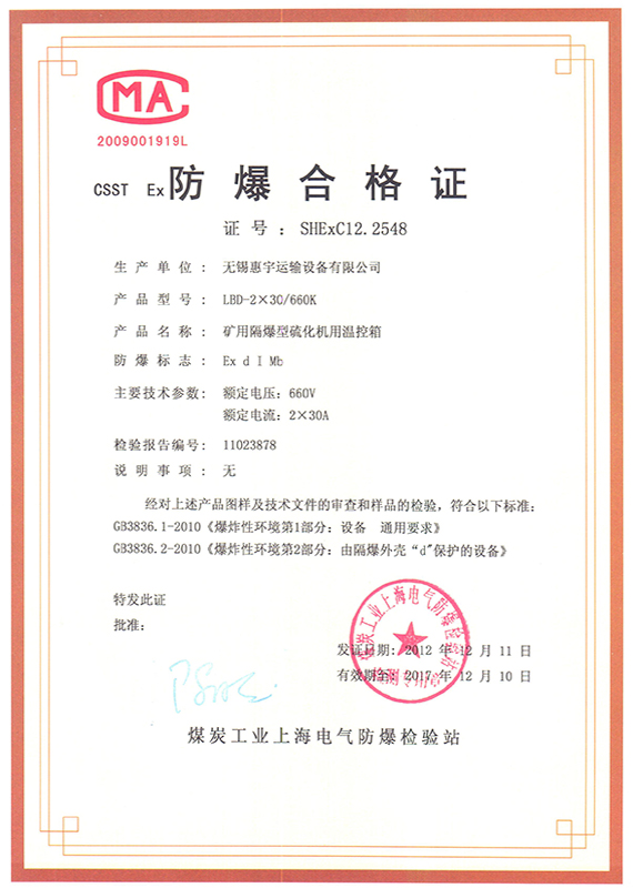 控制箱安標證 控制箱防爆合格證 硫化板防爆合格證